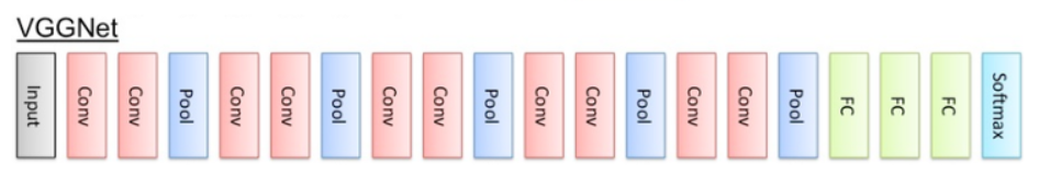 14년도 ILSVRC에서 GoogleNet의 성능에 아주 약간 못 미친 모델 입니다. 그러나 이 이후에 더 자주 사용되는 모델은 VGGNet입니다. 그 이유는 모델의 복잡성에 있습니다. GoogleNet은 Conv layer와 Pooling Layer를 조합한 Inception Module을 여러층 쌓고, Auxiliary Classifier 등을 활용하는 등 모델이 꽤 복잡합니다.