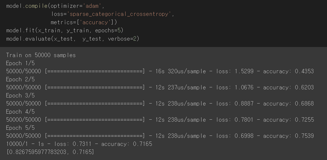 보시다시피 loss가 떨어지고 정확도가 올라가는 등, 성능이 개선된 것 처럼 보이네요.