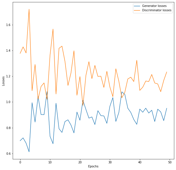 각각 D모델의 loss와 G모델의 loss 입니다. D 모델은 진짜와 가짜를 잘 판별해야하고, G 모델은 D모델을 속여야 하는 겁니다.