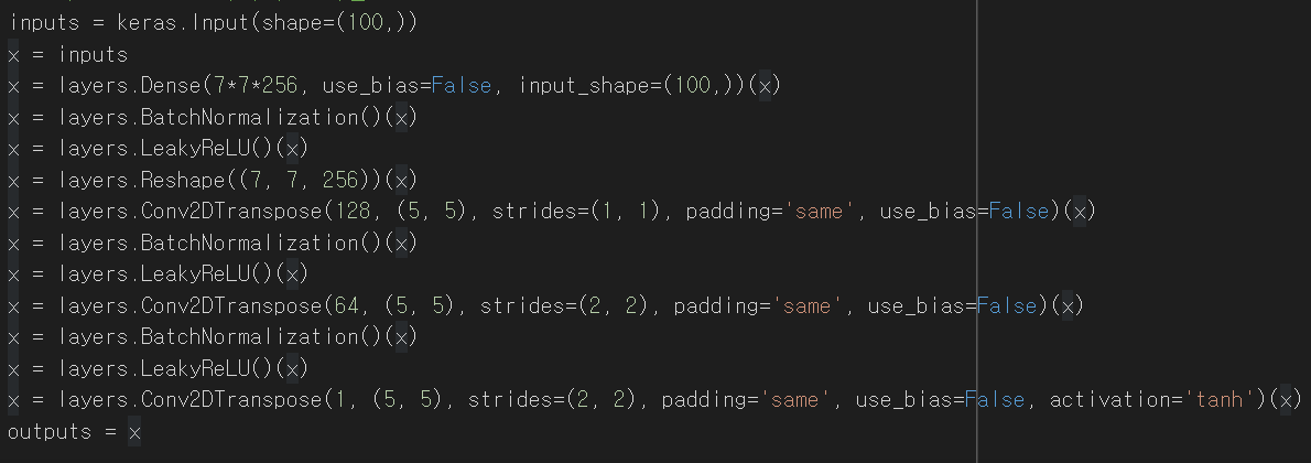 참고한 코드는 Tensorflow2의 공식 튜토리얼 입니다. (https://www.tensorflow.org/tutorials/generative/dcgan)