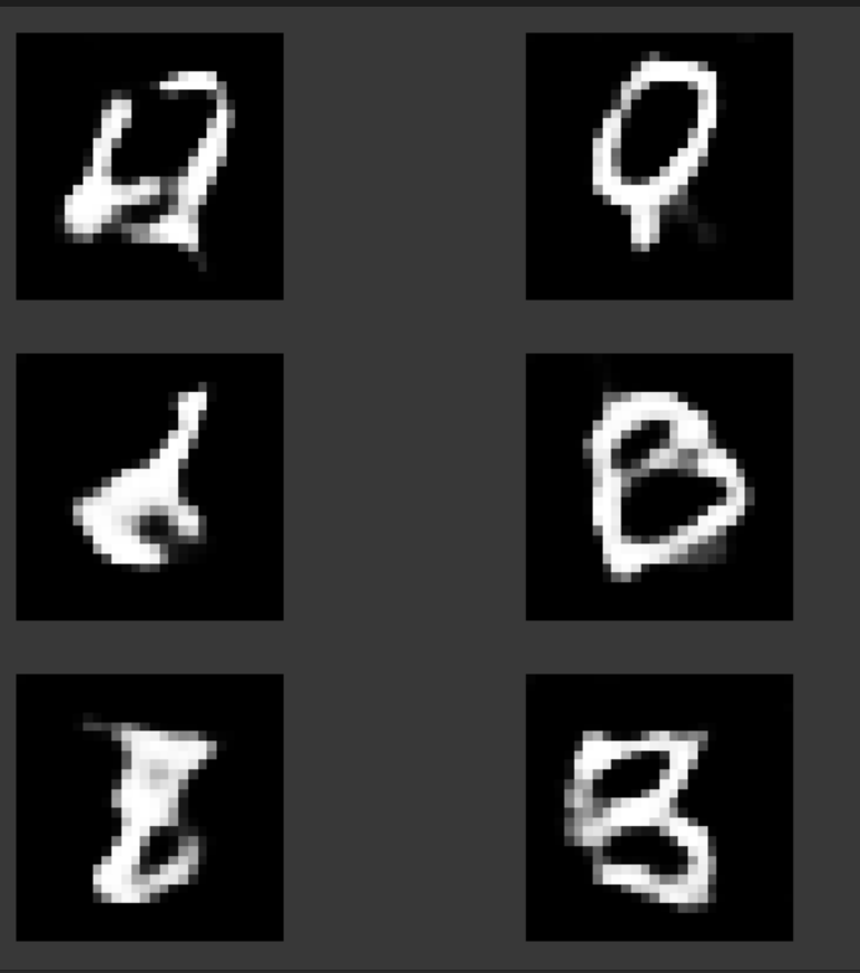 결과는 이렇습니다. Vanlia GAN에 비해서 배경에 noise가 없어지긴 했습니다만. 아직도 숫자를 제대로 알아보기는 쉽지 않습니다. 원래 GAN 훈련이 참 쉽지 않은 부분이라... 그렇습니다.