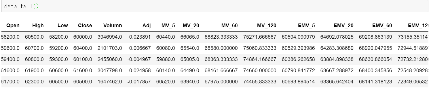 data.columns = ['Open', 'High', "Low", "Close", "Volumn", "Adj"]